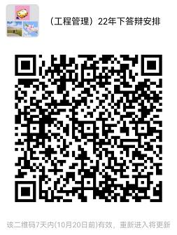 答辩名单及分组将于答辩前5天公布,请各位学生及时扫码加入“2022年下半年答辩安排”相应专业微信群,届时将通过微信群发布答辩的具体安排。进群后请立即实名,未实名者、不具备答辩资格者将移出工作群。